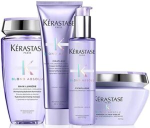 Ho alternato lo shampoo antigiallo di kerastase allo shampoo lumiere adatto ai capelli biondi, utilizzando una volta a settimana lo shampoo antigiallo e una volta a settimana lumiere accompagnato dalla maschera e dal balsamo i capelli rimangono setosi e luminosi, con questi shampoo finalmente sono riuscita a lavare i capelli solamente due volte a settimana, a parere mio il voto di questi shampoo è 10 su 10